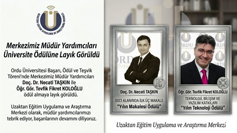Merkezimiz Müdür Yardımcıları Üniversite Ödülüne Layık Görüldü